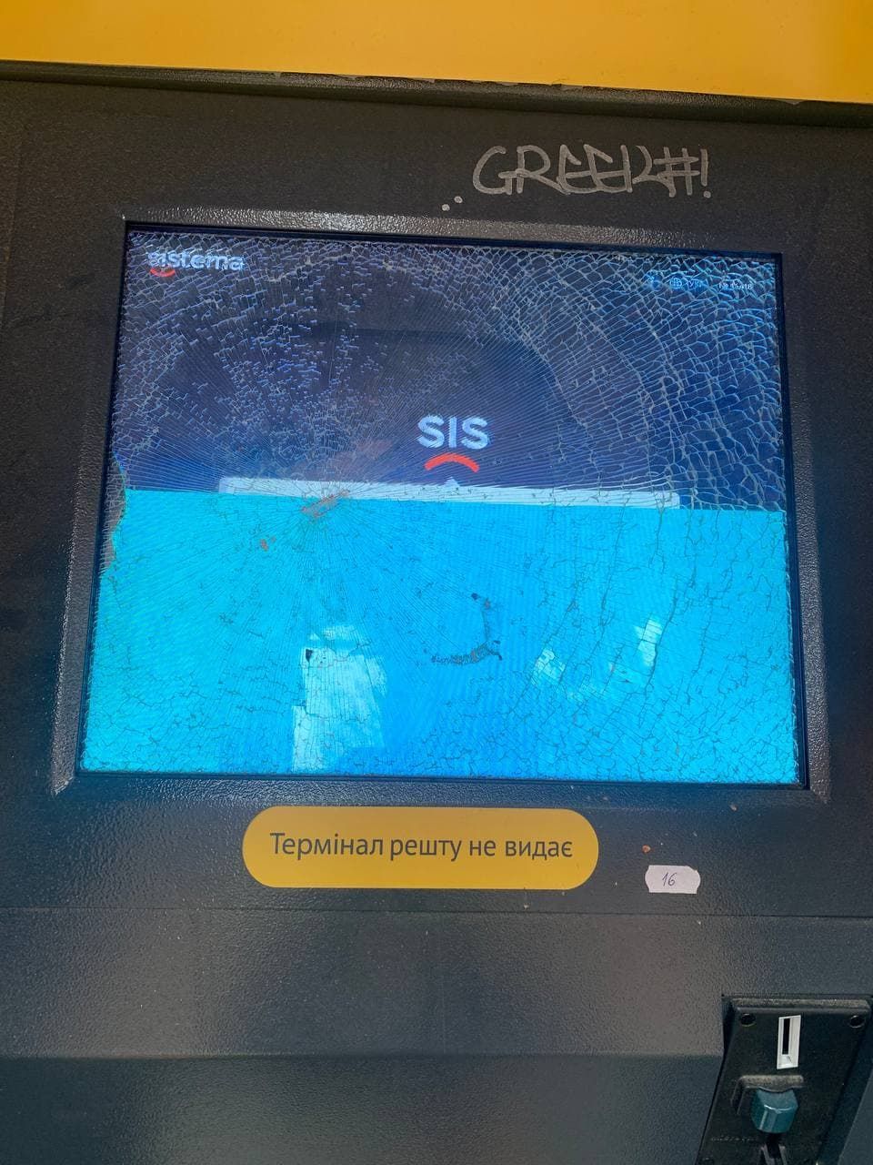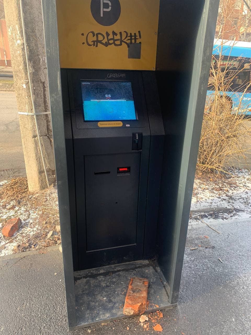В Днепре кто-то очень нервный разбил паркомат кирпичом.