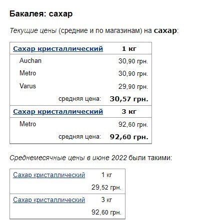 Год назад в эту же пору килограмм сахара стоил 26,13 грн.