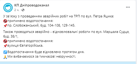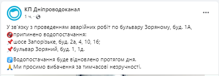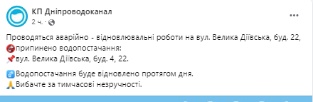 Сотни жителей Днепра сегодня остались без воды: адреса