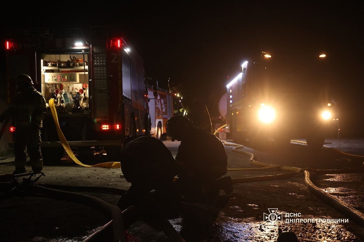 Спасатели показали кадры ликвидации пожара, возникшего в результате российского удара на объекте инфраструктуры в Днепровском районе.