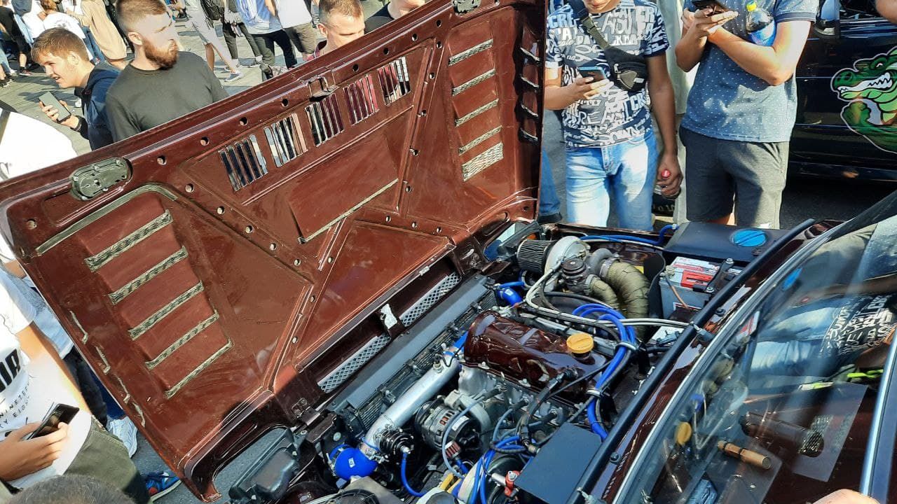 На выставку приехал и тюнингованных жигуль. Правда в основной части он не участвовал, но все равно смог собрать вокруг себя ценителей.
