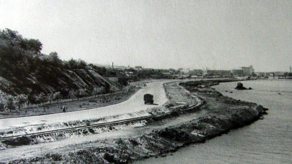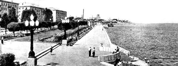 На набережной Днепра еще 100 лет назад были лесопилки и рядом швартовались баржи, а берег был захламлен мусором, чередовавшимся с камышовыми зарослями. В 1933 году был принят новый генеральный план города, где предусматривалась оборудованная набережная. В 1934 началось строительство ее первой очереди. Но до начала Второй мировой войны успели сделать только небольшой участок.