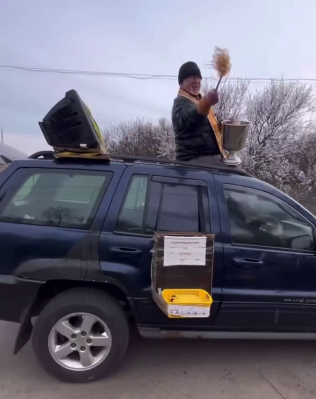 Священник на авто освящал пасхи в селе на Днепропетровщине