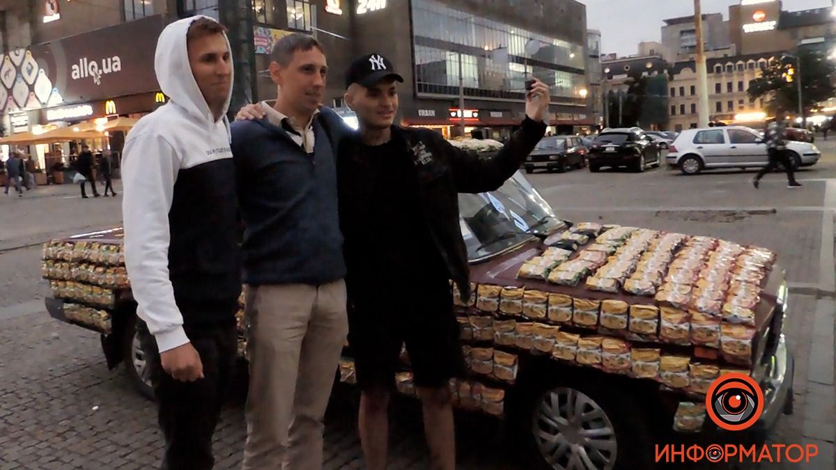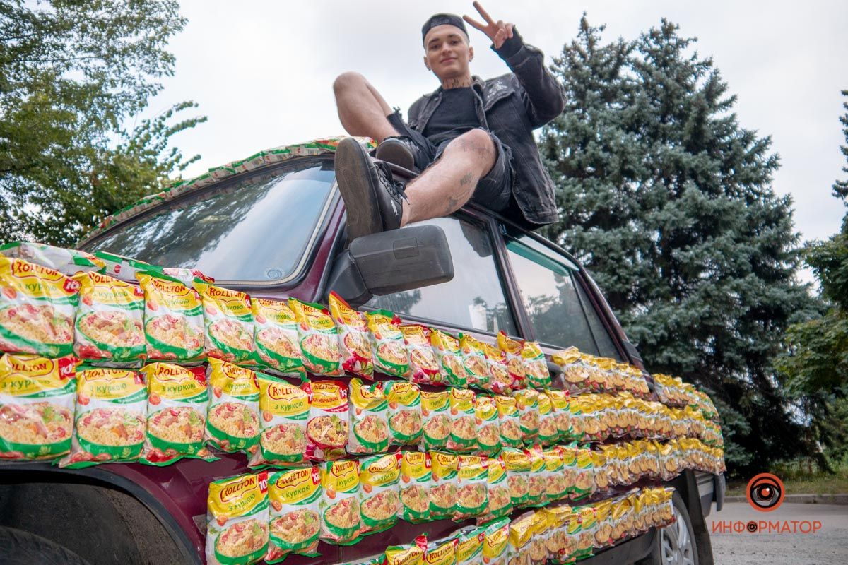Жители и гости города могли наблюдать в центре Днепра ВАЗ, кузов которого был обклеен пачками лапши быстрого приготовления.