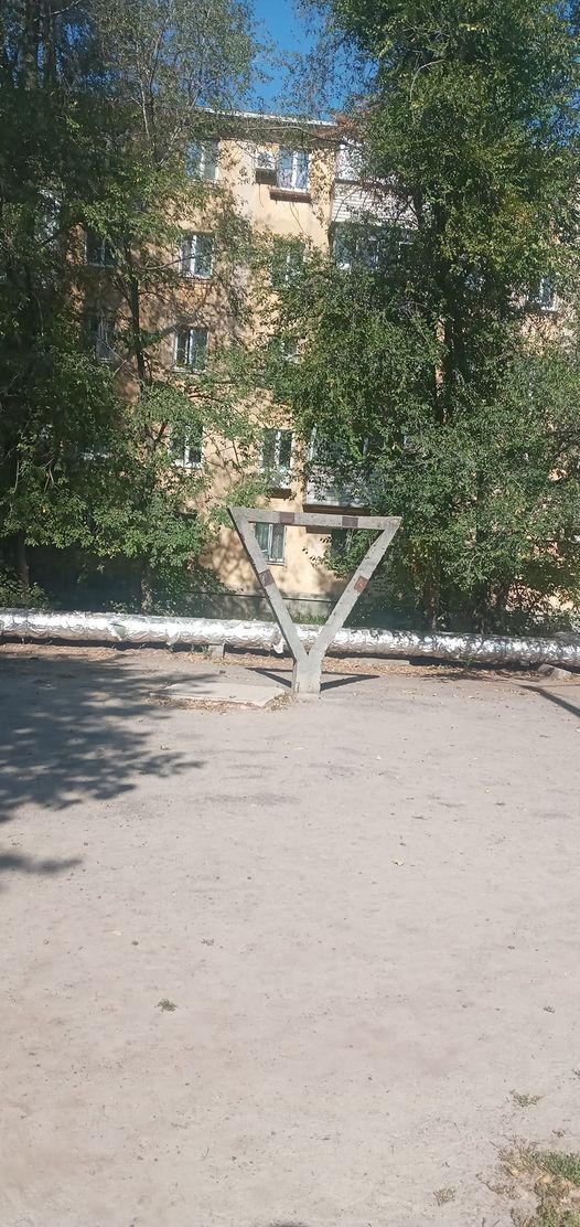 В 60-х, 70-х годах при обустройстве дворов многоквартирых домов оборудовались детские площадки с горками, песочницами, качелями, каруселями. Также создавались небольшие площадки типа летних театров. Были скамейки для зрителей, импровизированная сцена с конструкцией для натяжения экрана, на который проектировались фильмы и мультики для детей вечером в выходные (но это было крайне редко). Иногда проходило какое-то собрание, агитационные мероприятия. Так лавочки находились между парами таких конструкций, как на фото. Их было три – четыре пары. Предполагалось, что будет создаваться навес над лавками между этими треугольными конструкциями (где не видел в законченном виде). Во дворе на Калиновой 76-78 сохранилась до сих пор конструкция для экрана», – рассказал Михаил Козлов.