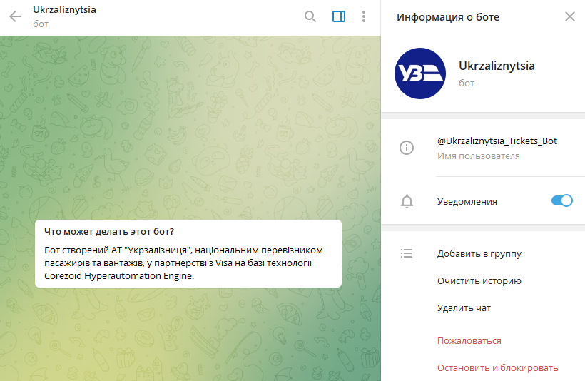 Теперь в официальном чат-боте "Укрзалізниці" в мессенджерах можно приобрести билеты на все поезда. Кроме этого, поставить оценку проводнику и вагону.