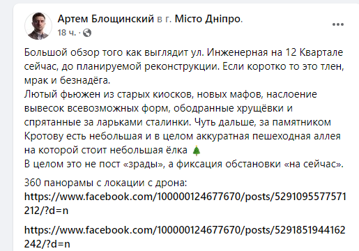 «Тлен, мрак и безнадега»: в Днепре показали, как выглядит улица Инженерная до реконструкции