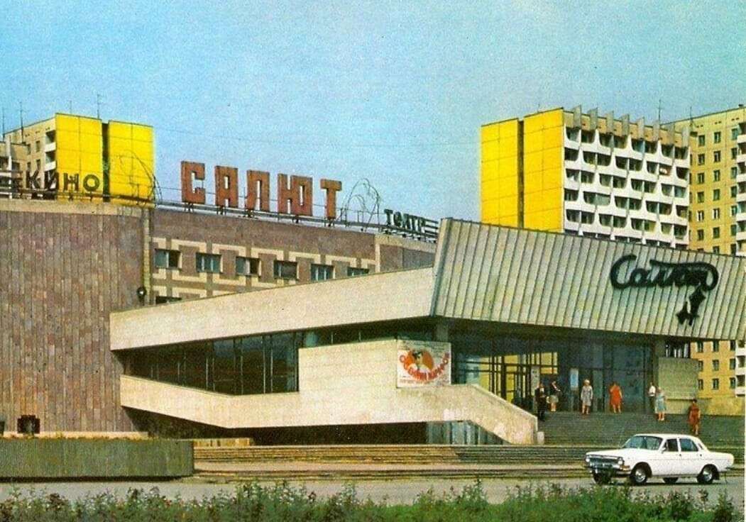 Кинотеатр «Салют» открылся на Победе в 1976 году. Это был подарок жителям города на 200-летия со дня основания Днепра. Кинозал пережил 1990-е годы, а в начале 2000-х его реконструировали. Но в 2010 году кино тут показывать перестали. «Салют» стал местом обитания бомжей, несколько раз тут случались пожары. В 2021 году его снесли. На месте кинотеатра планируют построить новый ЖК.