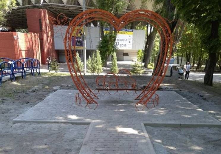 В 2018 году в парке Шевченко появилась лавочка-качели в форме сердца. Назвали ее просто «Сердце». На качели могут покататься сразу двое. Сильно раскачаться на ней не получится, но это отличное место для романтических встреч и проведения фотосессий.