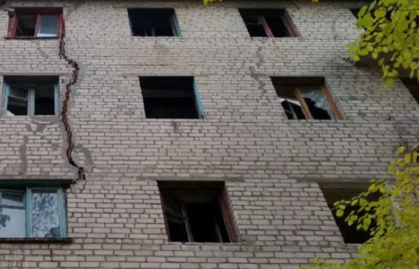 Практически в самом центре Днепра находится полужилой дом. Находится он на склоне Рыбаковской балки, был построен в 1967 году, а в 2002 году жильцы проснулись от того, что дом начал трещать и крениться – его стены пошли трещинами. Дом решили полностью не расселять, выселили только тех, чье жилье непосредственно пострадало, а трещины заделали пенобетоном. С тех пор половина дома пустует, а часть соседствует с мусором, тараканами, крысами и бомжами, которые облюбовали нежилые помещения.