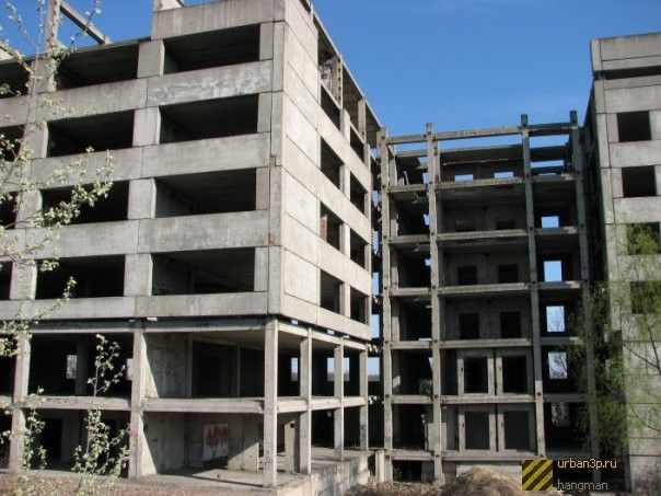 Часть строений в Днепре, которые сейчас заброшены стали такими еще на этапе строительства. В частности, на жилмассиве Кротова находится одна из таких заброшек. Объект начали строить в конце 1990-х годов, но спустя 10 лет прекратили. Планировалось, что это будет здание больницы из 5 корпусов, но построить успели только два из них. Находится заброшка вдалеке от жилых домов и постепенно разрушается. Конструкция еще цела, но выглядит пугающе – тут нет ни окон, ни дверей, часть крыши на одном из корпусов отсутствует. Здания стали любимым местом экстремалов, бомжей и самоубийц. По словам местных жителей, по ночам тут часто воют собаки.