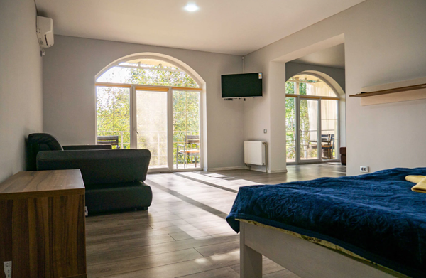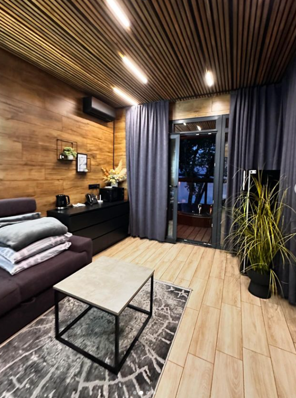 Стоимость 2-х комнатного люкса обойдется в 5,4 тыс грн в сутки. В номере могут проживать до 4-х человек. В нем две отдельные спальни в каждой из которых двуспальная кровать. Номер на трех человек обойдется в 3,8 тыс грн в сутки. Аренда бунгало на двоих – 2,8 грн в сутки, деревянный сруб – 4,8 тыс грн в сутки.