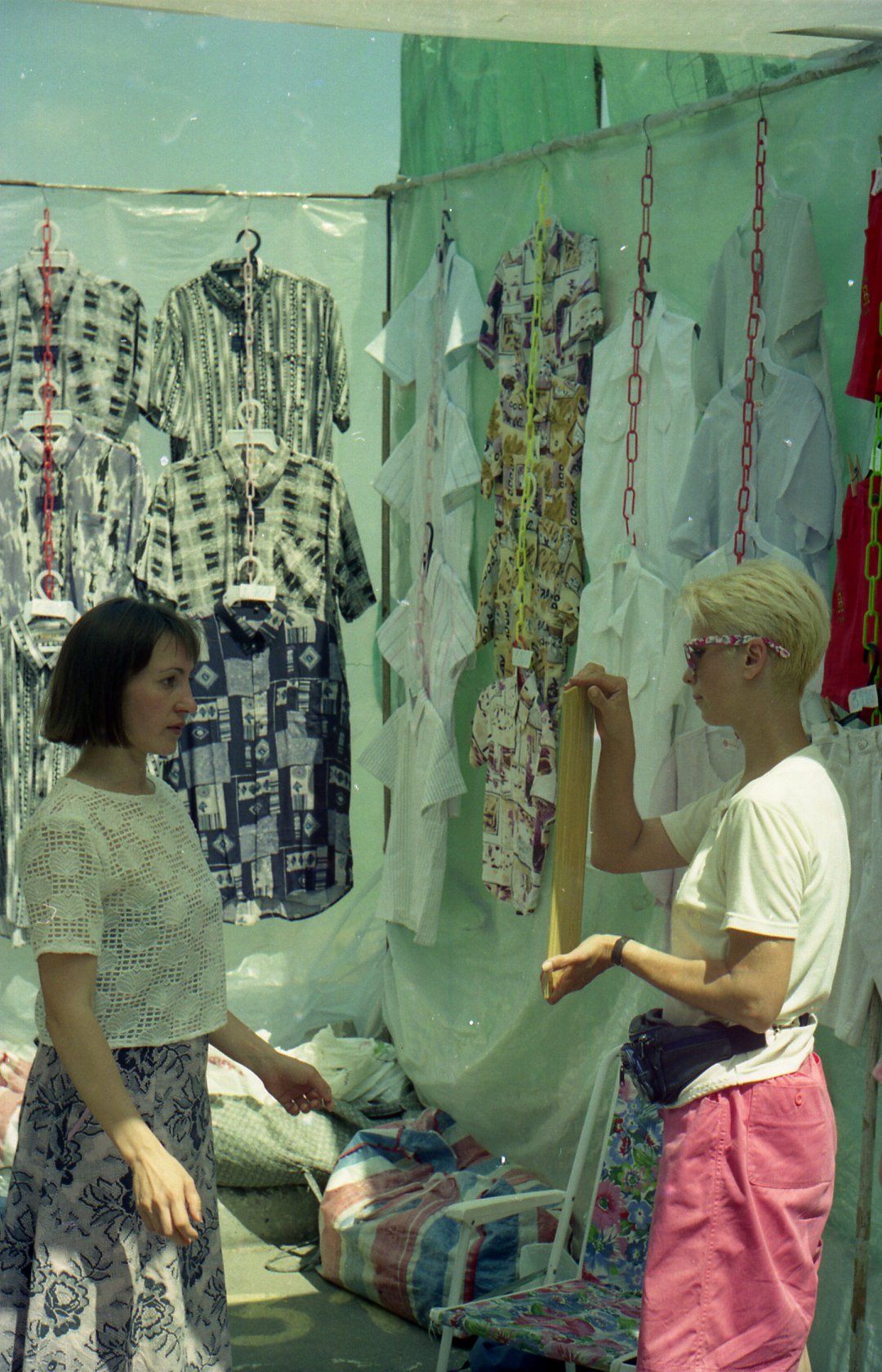 Одежду на рынке меряли стоя на газетке, а продавец с помощью рук и простыни создавал импровизированную кабинку, где покупатель мог переодеться.