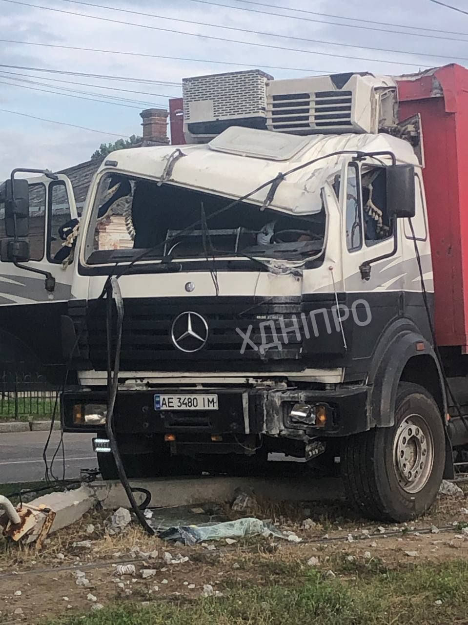 Травмировался водитель: в Днепре на Рабочей грузовик влетел в столб (ФОТО)