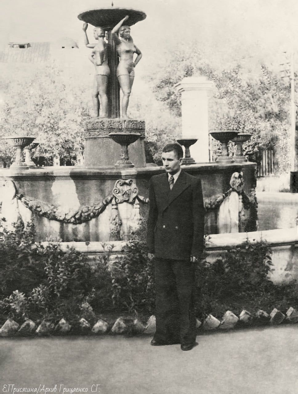 В середине 1950-х годов были популярны фонтаны в середине которых находились различные композиции – дети, студенты, колхозники, спортсмены. Такие фонтаны часто устанавливали в городах. Был такой фонтан и на центральном проспекте Днепра.