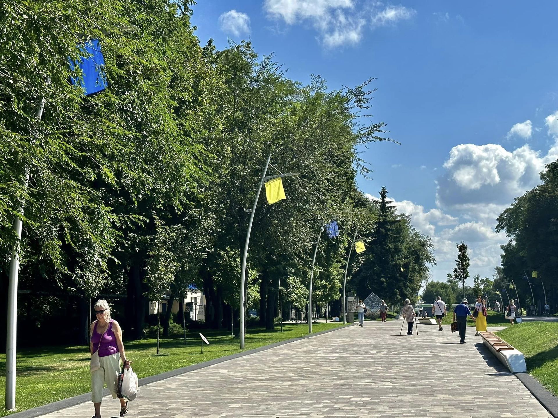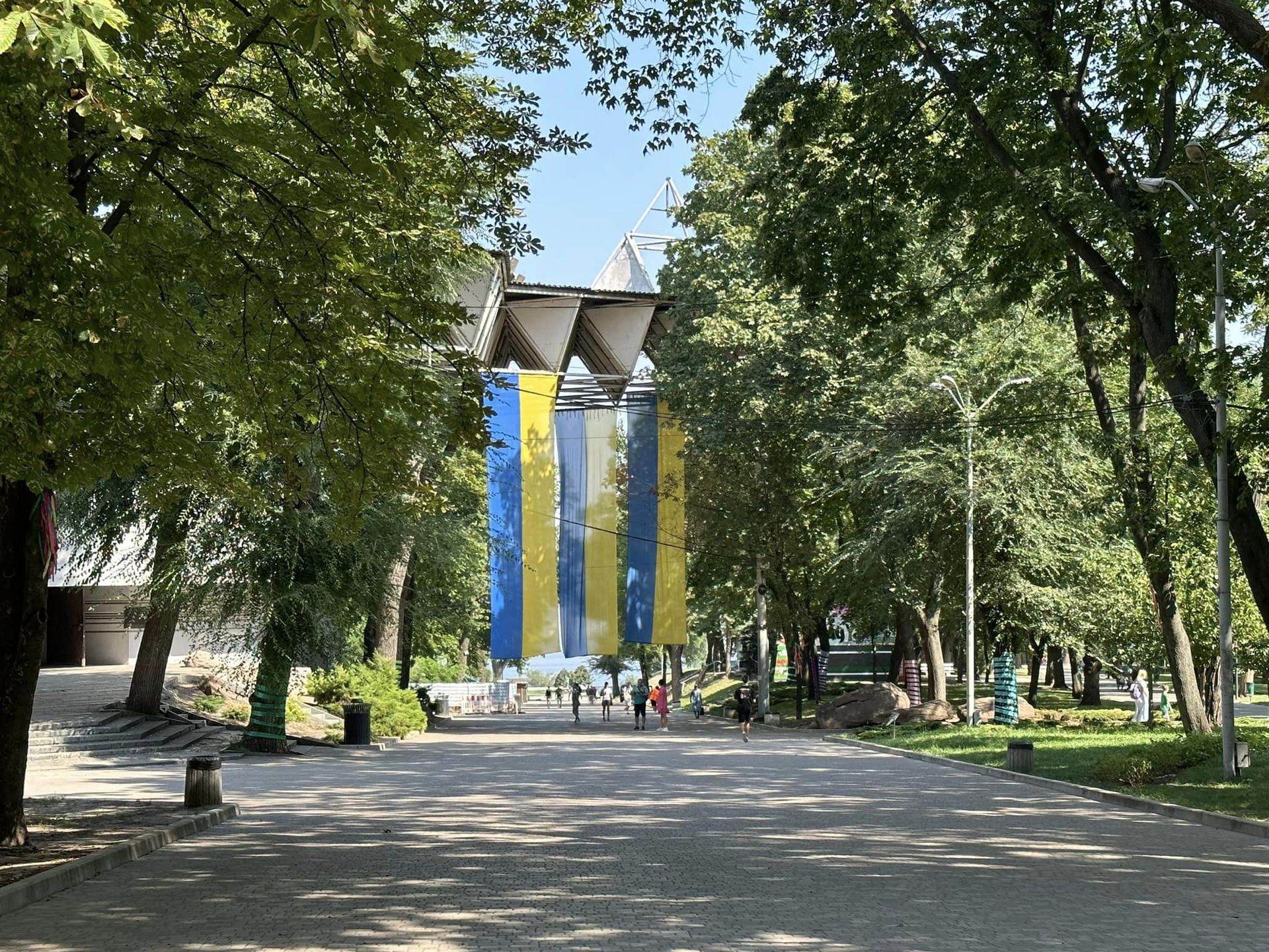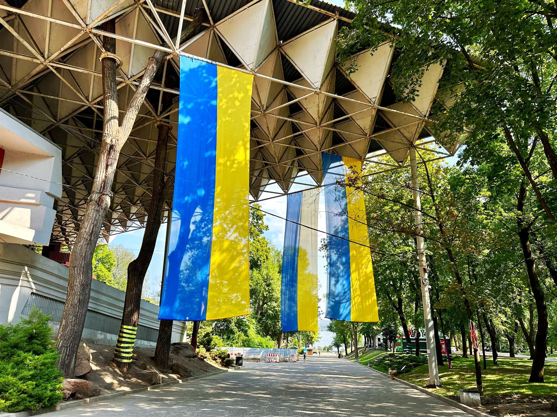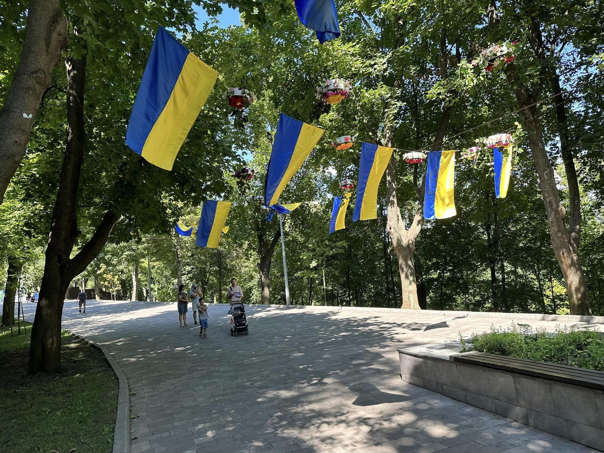 К этим праздникам в Днепре решили украсить парки: там развесили флаги и обустроили яркую цветочную фотозону.