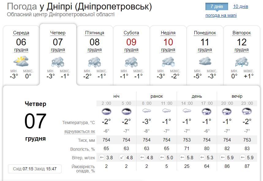 7 декабря в Днепре прогнозируют сильный снегопад и мороз до -3 градусов.