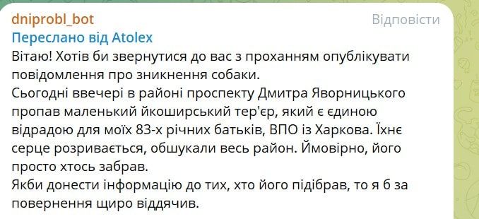 У пожилой пары переселенцев в Днепре украли собачку, которая была единственной отрадой