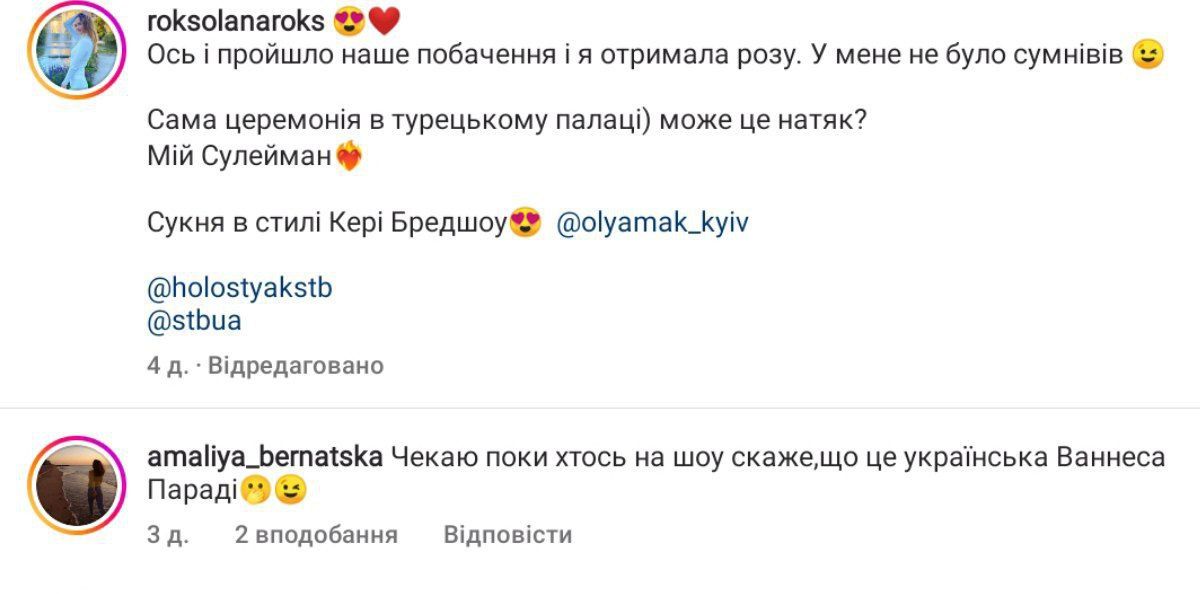 В комментариях под постами девушки в инстаграмме пользовательницы отмечают, что Роксолана похожа на Ванессу Паради.
