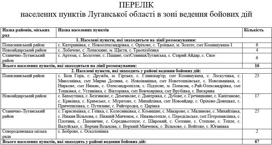 Они делятся на населенные пункты в районе боевых действий и на линии столкновения.