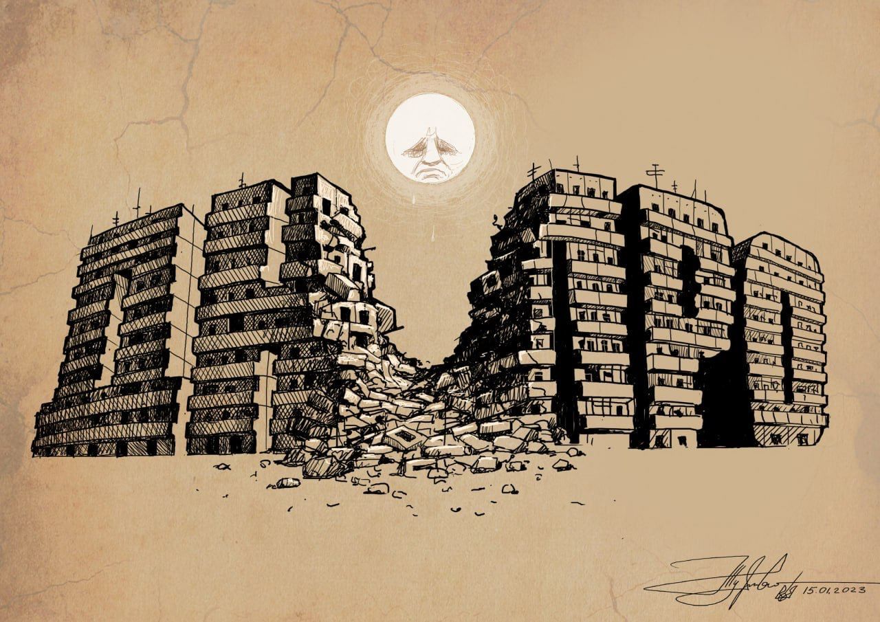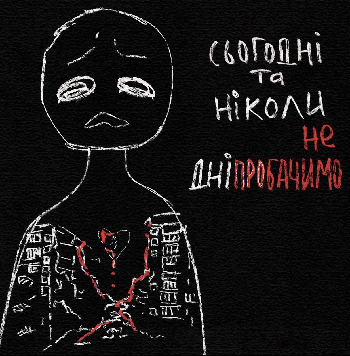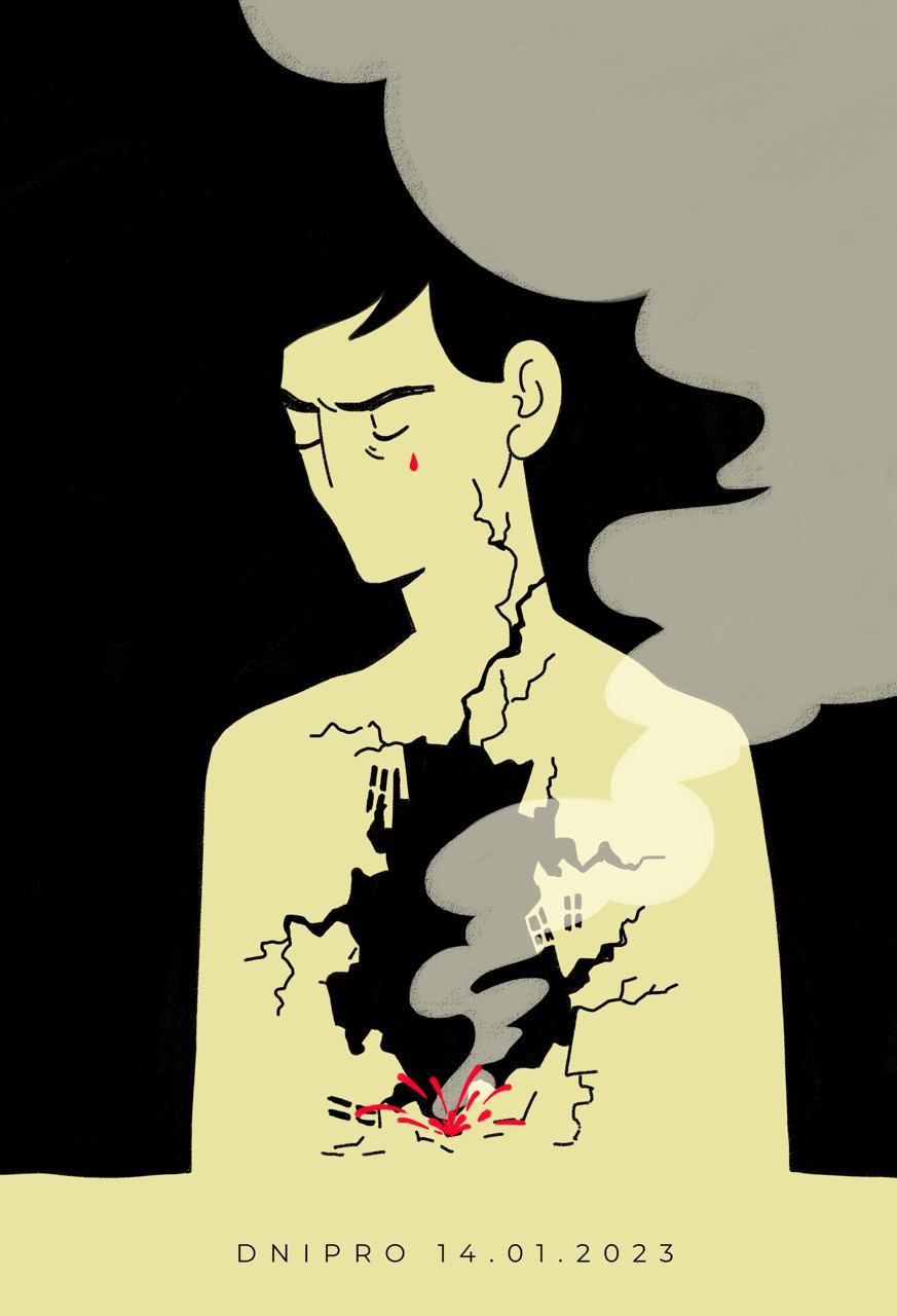 Украинские художники опубликовали свои работы, которые создали, чтобы поддержать днепрян после вчерашней ракетной атаки, а также еще раз напомнить о зверствах оккупантов всему миру.