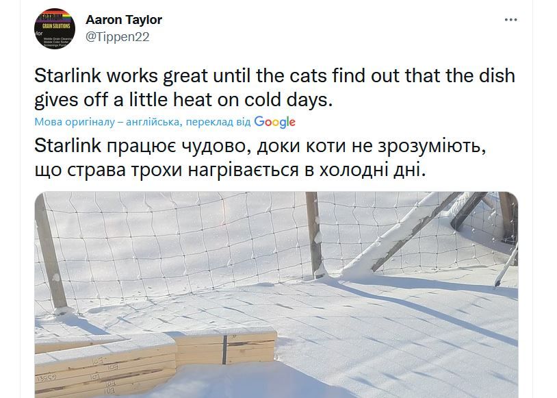 Однако украинские коты не первые, кто оккупировал спутниковые тарелки, чтобы погреться на них. В начале 2022 года в сети завирусилась история канадца Аарона Тейлора, который пожаловался Илону Маску в твиттере, на дворовых котов, которые захватили Starlink. Пушистики группами сидели на них и грелись.