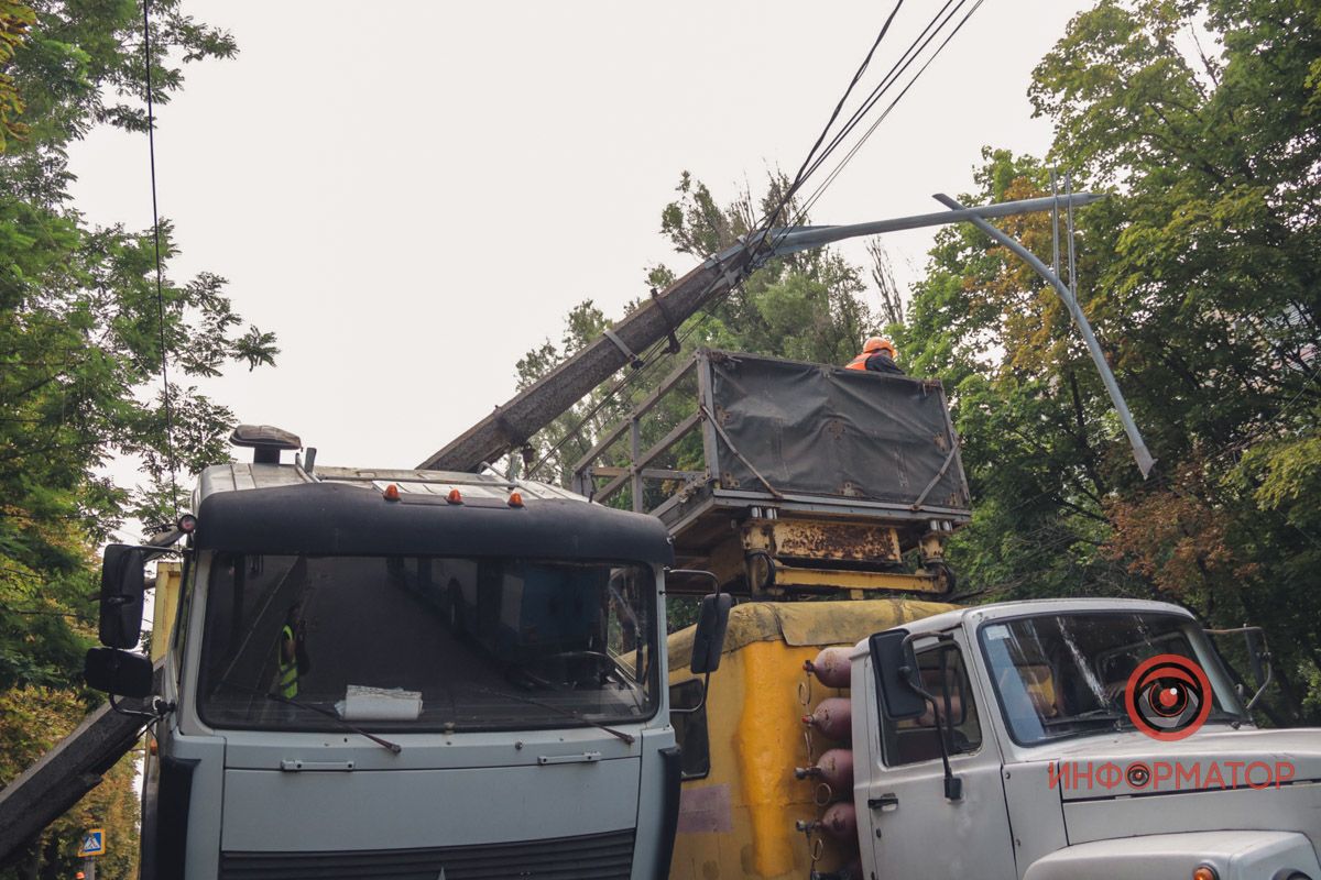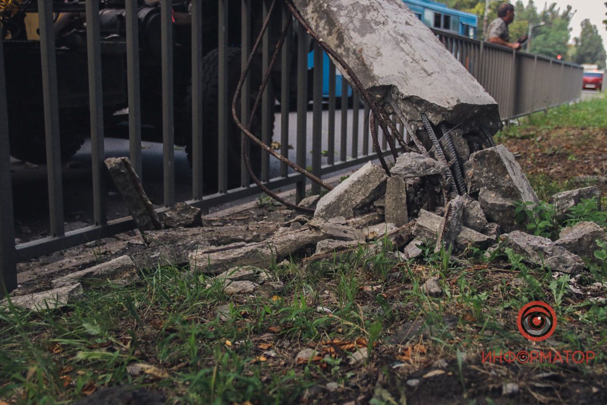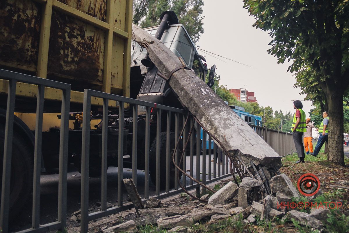 Уламки бетону та заліза: в Дніпрі на Панікахи стовб впав на фуру
