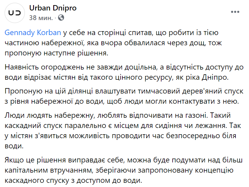 Этот вариант презентовали в группе Urban Dnipro в ответ на предложение бизнесмена Геннадия Корбана обсудить альтернативные варианты благоустройства.