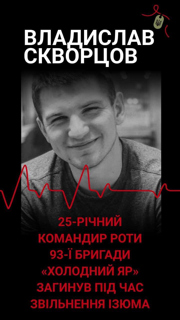 С началом полномасштабного вторжения Владислав Скворцов в составе 93-й бригады принял бой с оккупантом на Сумщине в городе Ахтырка. Затем героически освобожджал Тростянец. После чего их перенаправили в Изюмское направление, где Владислав отдал свою жизнь за Украину.