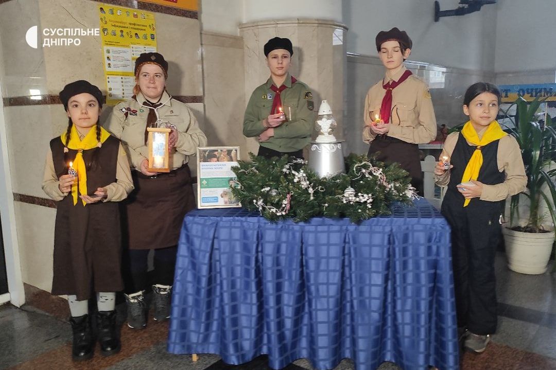 По традиции этот огонь доставляет скаутское движение. Из Вифлеема он прибыл в Европу, а затем из Вены в Киев, откуда его развозят в каждый город Украины железной дорогой. 13 декабря его привезли в Днепр и зажгли в пункте несокрушимости на вокзале.