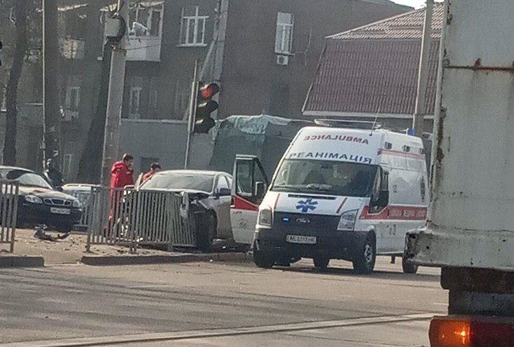 Сегодня, 27 марта, на пересечении улиц Рабочей и Владимира Антоновича (бывшая Свердлова) автомобиль Mitsubishi влетел в ограждение.