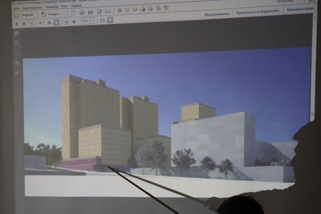 Второй вариант – на стилобате могут разместить два 7-ми этажных сооружения и новый "небоскреб" на 21 этаж.