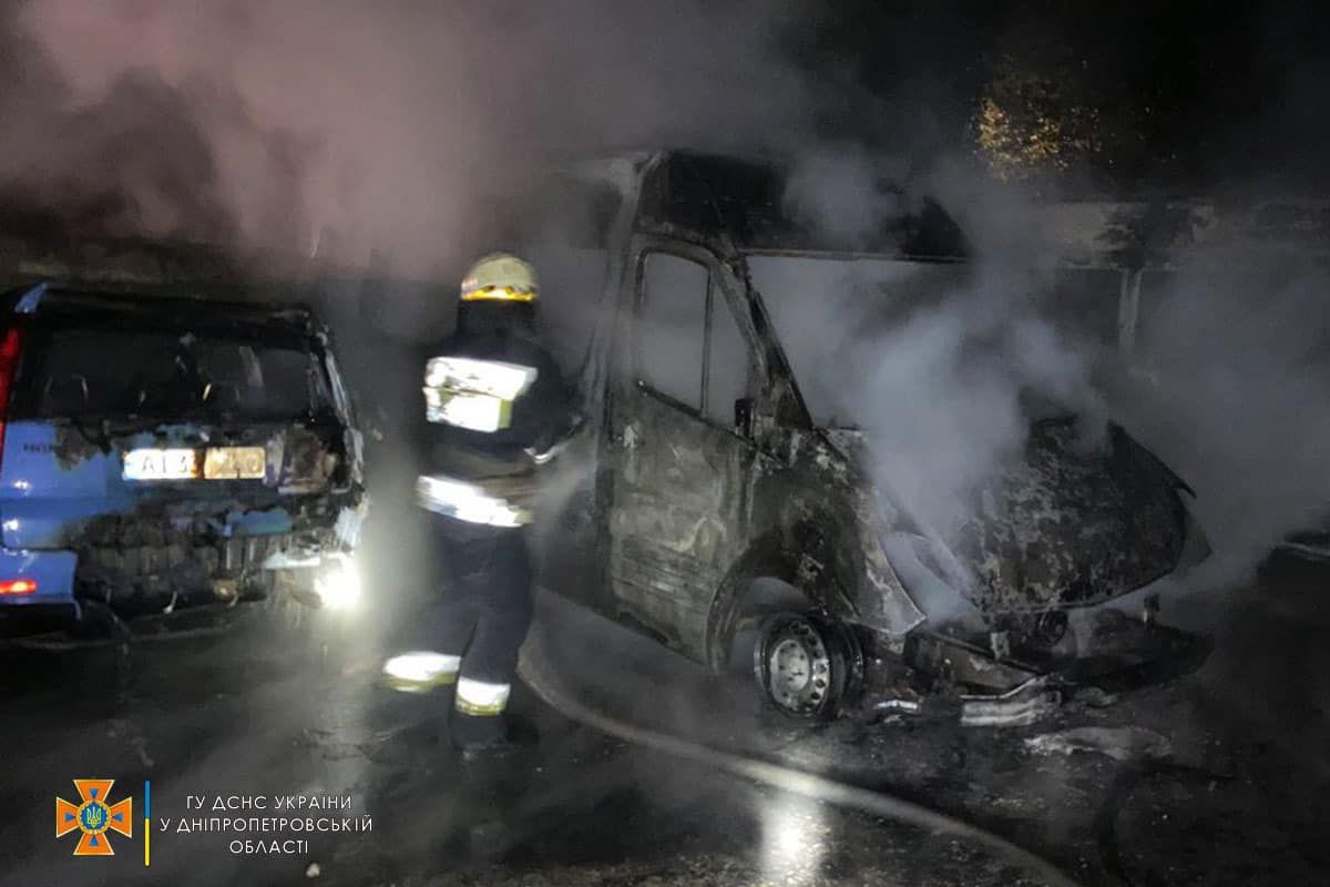 Огонь уничтожил микроавтобусы Mercedes-Benz Sprinter и Volkswagen LT, а также легковой автомобиль Honda на общей площади 25 кв. м.