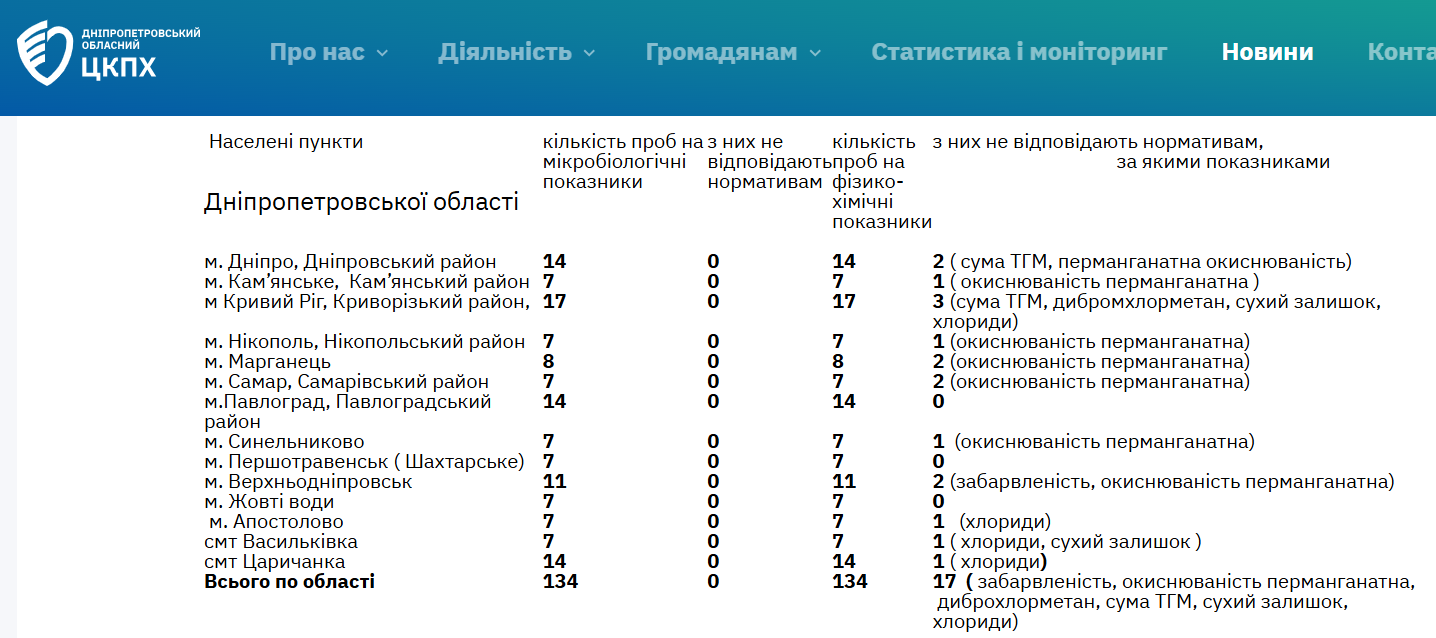 За период с 21 по 27 ноября на территории области исследовано 134 пробы питьевой воды, сообщает ГУ «Днепропетровский ОЦКПХ МЗ Украины».