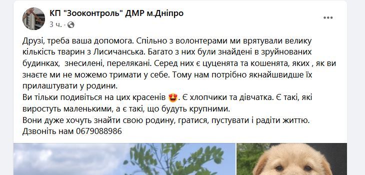 Благодаря волонтерам удалось спасти огромное количество животных, которые были в Лисичанске под обстрелами. Многих из них вытащили с разрушенных домов, малыши были очень напуганы и обессилены. К сожалению, их всех нельзя держать долго в Зооконтроле, ведь поступают все новые подопечные.