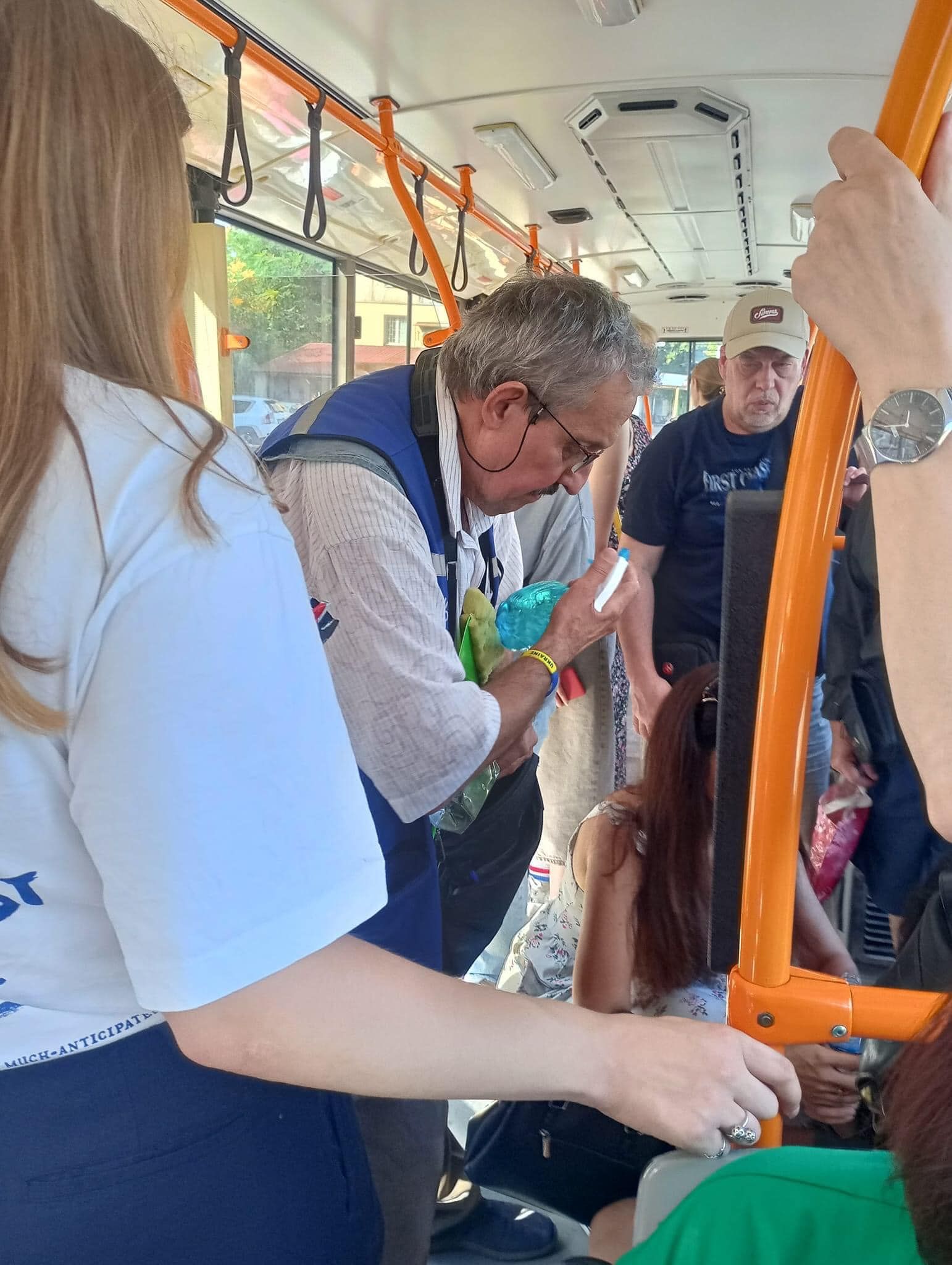 Мы уже писали об этом мужчине. В разгар аномальной жары мужчина охлаждал пассажиров самодельным веером.