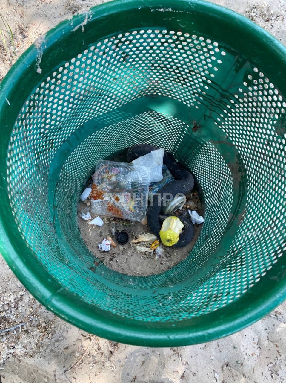 Еще одну мертвую змею заметили на Приднепровском пляже. Отдыхающие предполагают, что пресмыкающийся заполз в банку пива и погиб.