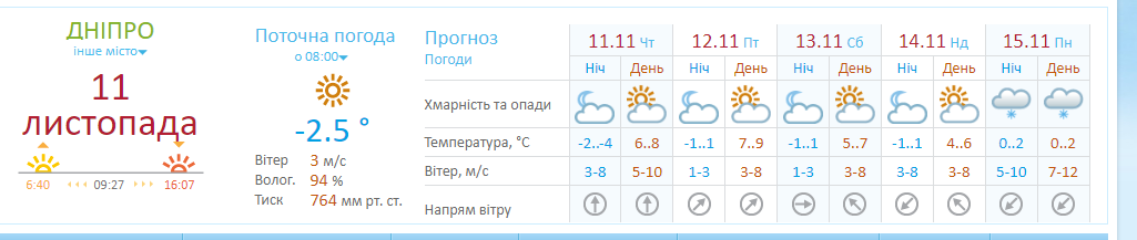 В ближайшие дни в Днепре будет сухая погода, но с морозами. На выходных температура воздуха ночью опуститься до -1 градуса. А вот с понедельника днем до 0 градусов и 15 ноября выпадет первый снег. Об этом сообщается на сайте Укргидрометцентра.