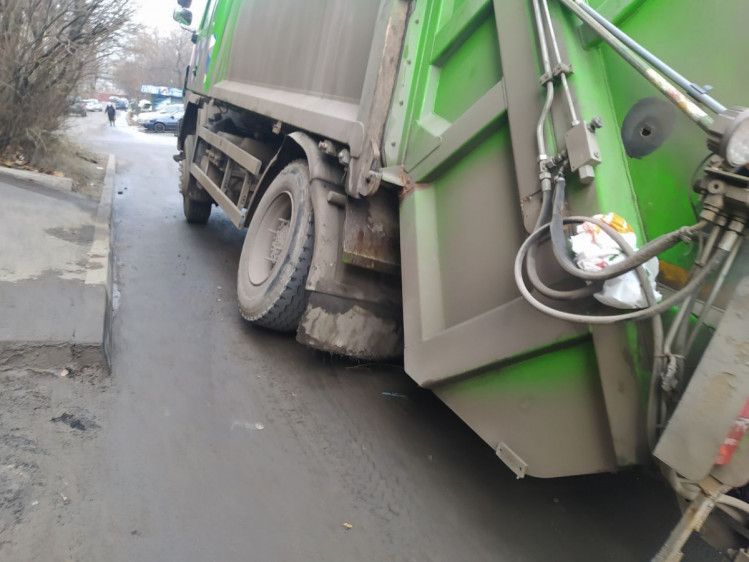 В Днепре на Александра Поля мусоровоз провалился колесом под асфальт