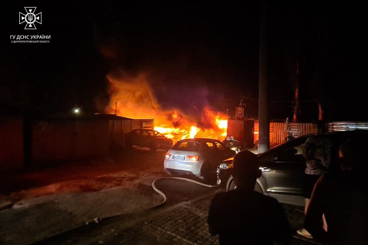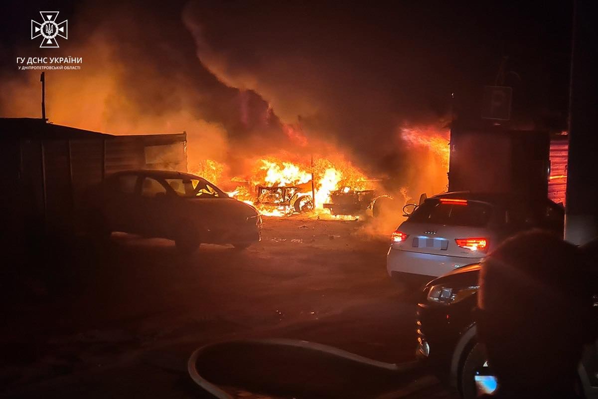В Днепре на автостоянке произошел масштабный пожар: 8 авто уничтожено, еще 7 повреждено (ФОТО)