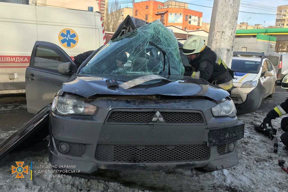 В Днепре на левом берегу Mitsubishi врезался в столб: водитель умер в больнице