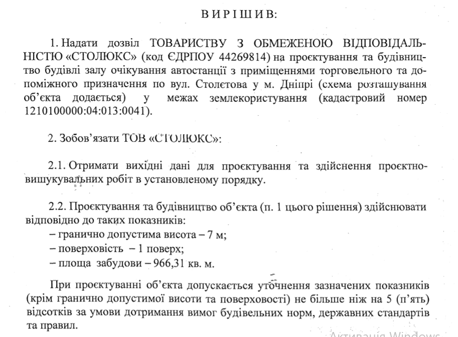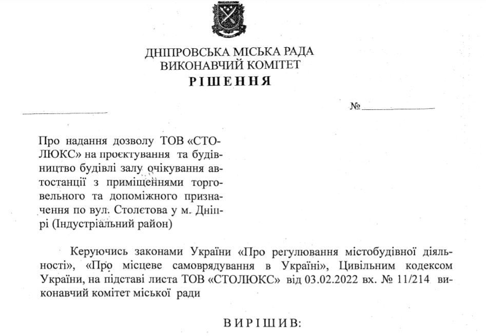 На сайте Днепровского горсовета опубликовали проект решения, согласно которому, автостанцию на улице Столетова разрешили реконструировать. Отметим, что документ пока что не подписан мэром, поэтому это только проект.