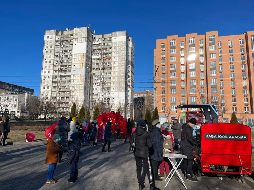 На Левобережном-3 решили устроить фотозону на День святого Валентина. Там 13 февраля поставили гигантских красных медведей, которые сидели в окружении десятка надувных шариков. Плюшевые мишки привлекли внимание маленьких жителей района, которые пришли вместе с родителями.