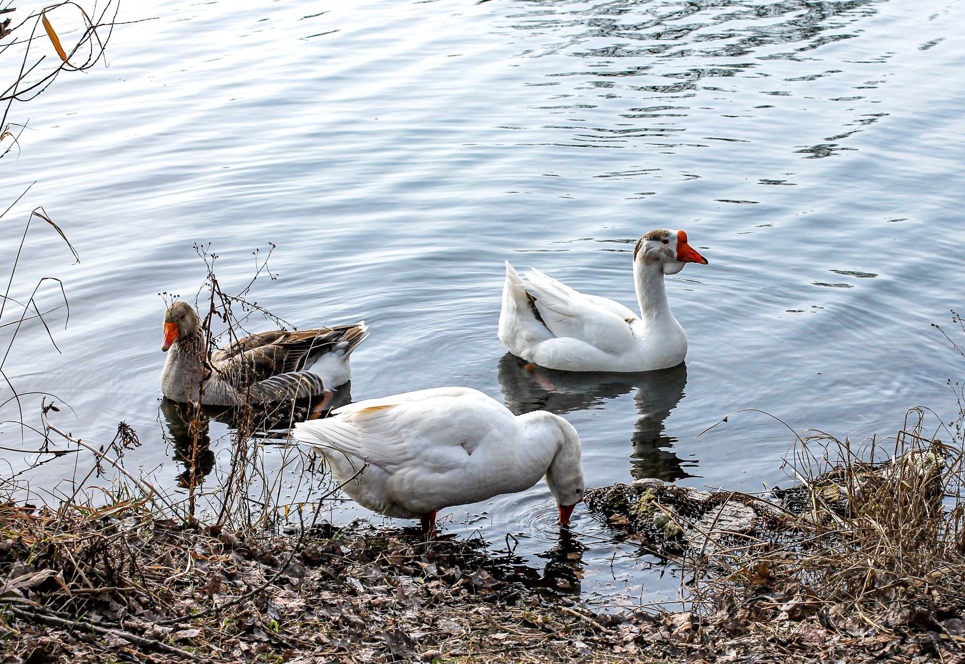Птицы совсем не боятся чужаков, поэтому достаточно близко подпускают к себе людей. Как давно гуси обитают на озере – неизвестно. Заметили их несколько дней назад.