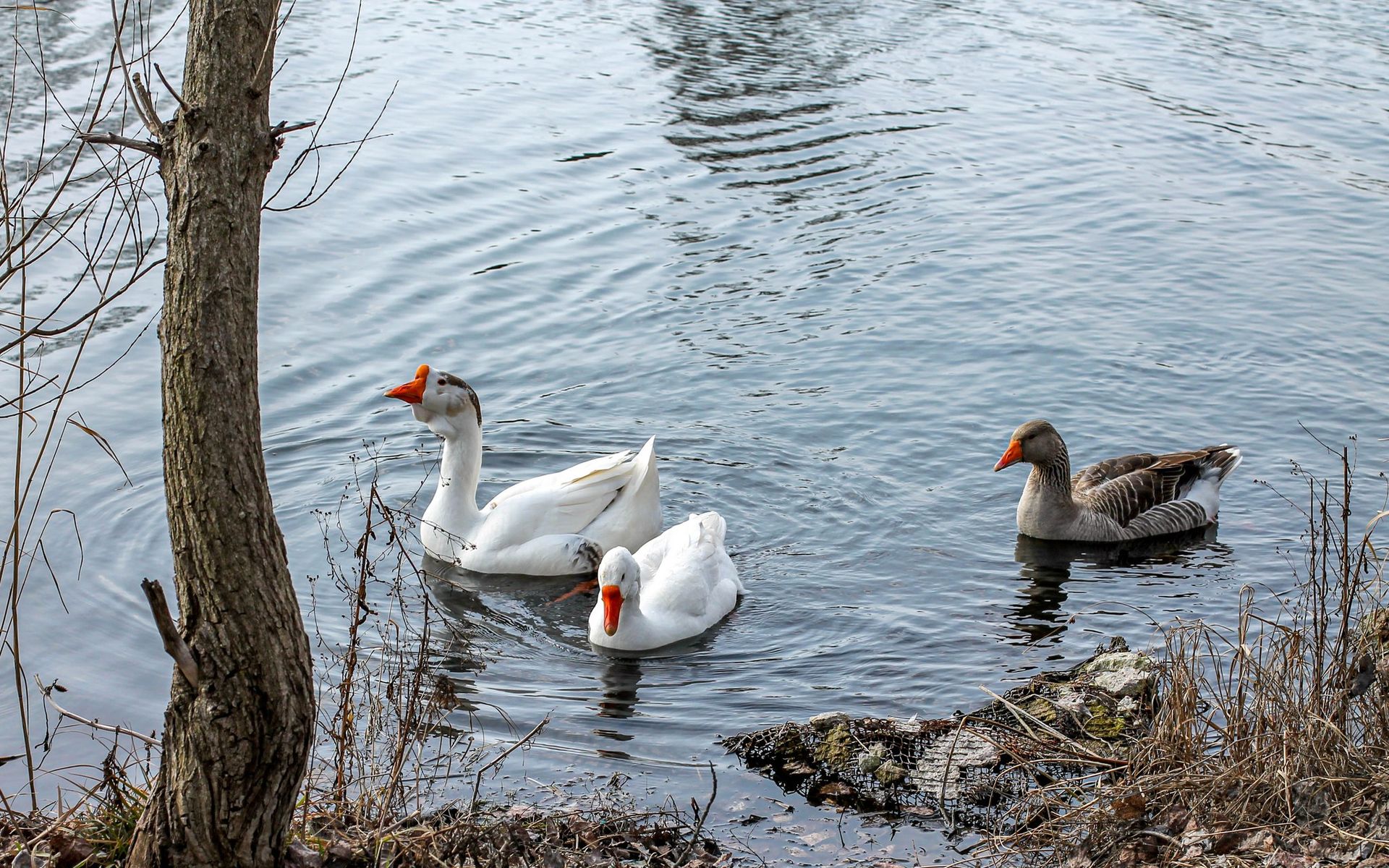 В Днепре на озере ж/м Левобережный поселилось почтенное гусиное семейство (ФОТО)
