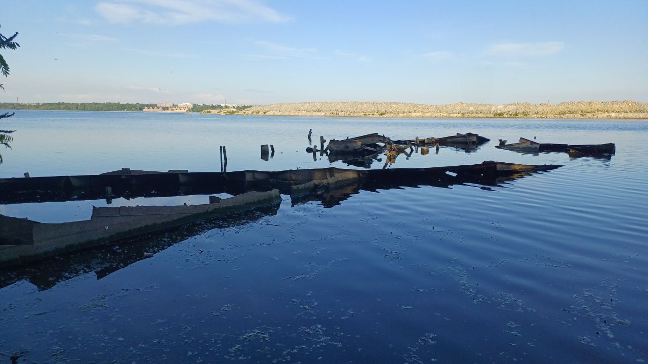 Старый затонувший пароход на Победе-6 снова "вынырнул" на сушу. Это произошло из-за резкого падения уровня воды в Днепре. До этого была видна только верхушка судна, сообщает Dnepr.info.