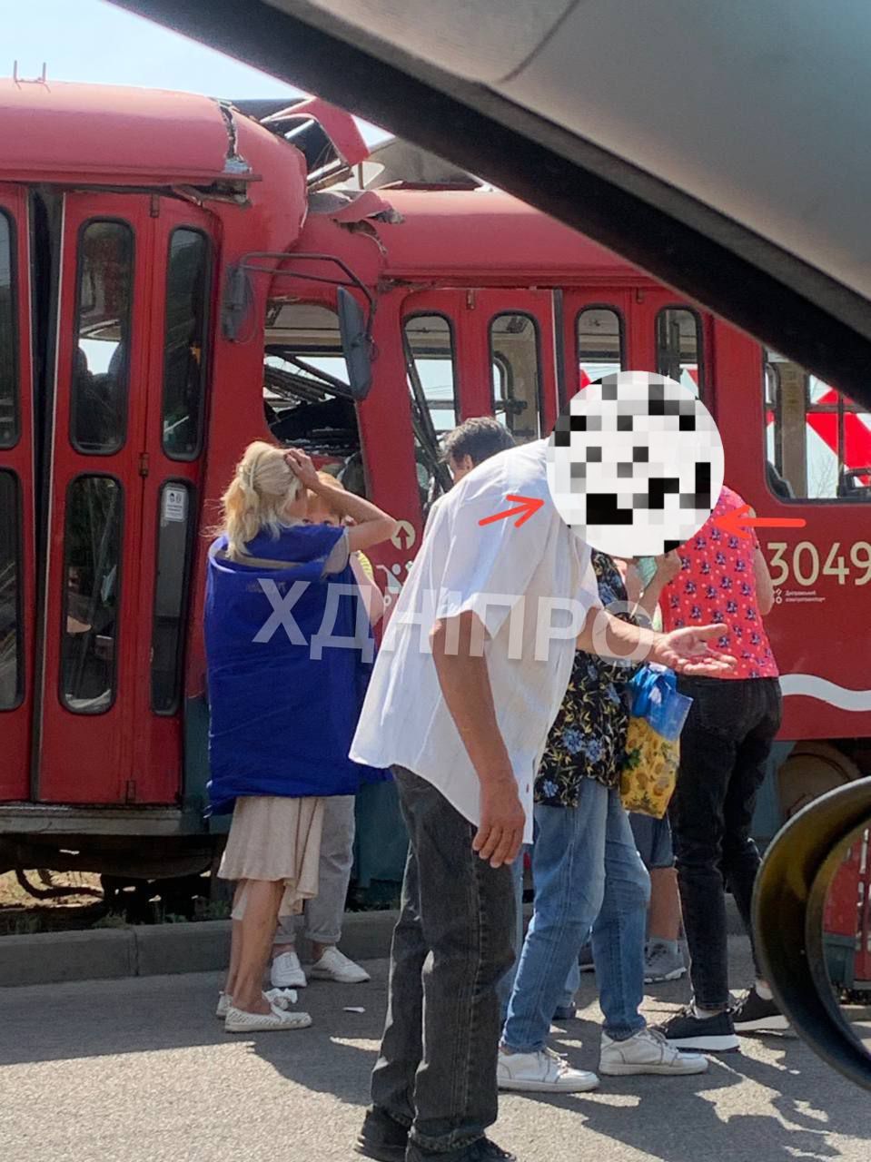 На опубликованных материалах видно, что результат столкновения местных трамваев. Вероятно, трамвай сзади на скорости влетел в предыдущий - об этом свидетельствует положение транспорта и значительные повреждения лобового и заднего стекла.