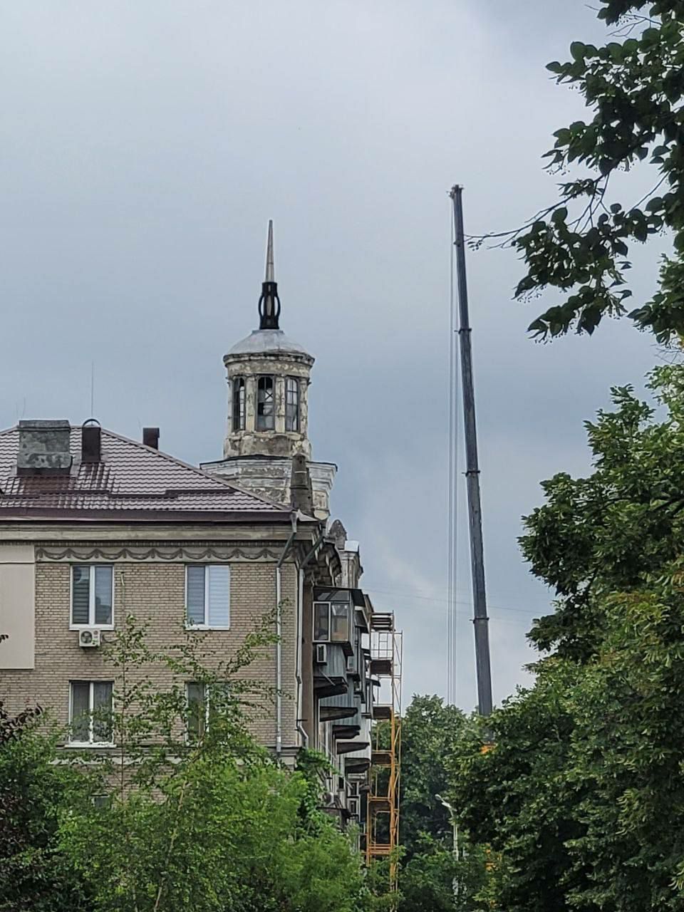 В эти выходные в Днепре убрали советскую звезду, возвышающуюся на шпиле дома по улице Рабочей. В прошлом году это сооружение пострадало от ракетных ударов, поэтому вместе с демонтажем тоталитарного символа заодно отреставрируют фасад дома.