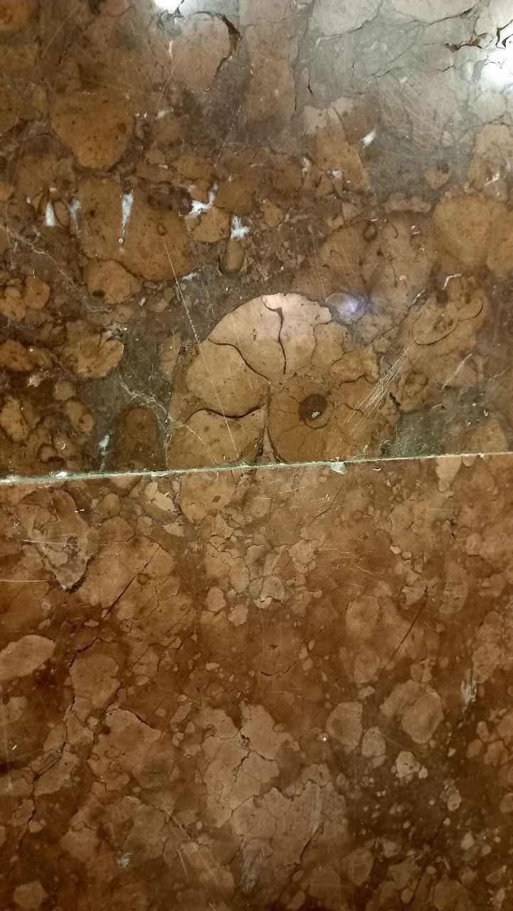 В мраморных облицовках станций обнаруживается самые настоящие отпечатки древних морских существ.