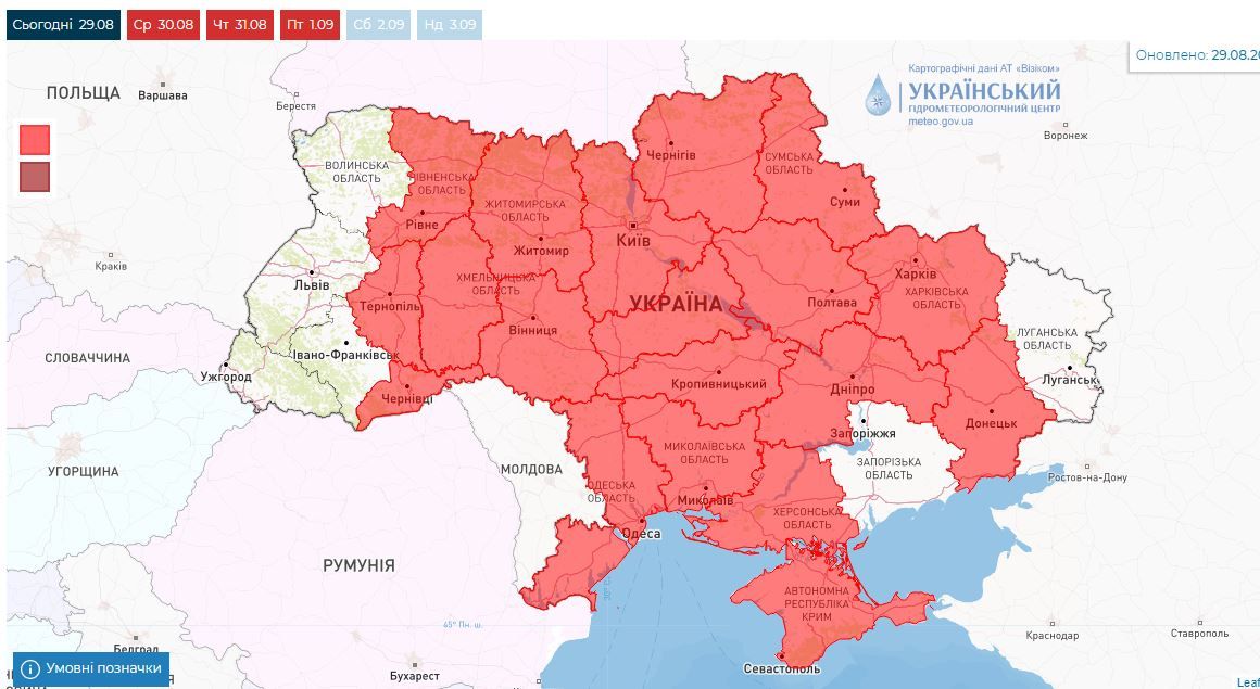 С 29 по 31 августа на территории Днепра и области ожидается пожарная опасность 5 класса. Это самый высокий возможный уровень. По словам синоптиков, это вызвано отсутствием дождей и аномальной жарой, накрывшей Украину.